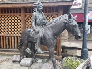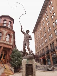 While we visited the “Walking Mall” we saw the statue of a bullwhacker in the street closed for traffic and only open to the padestrians.